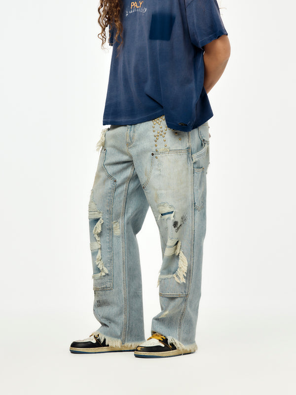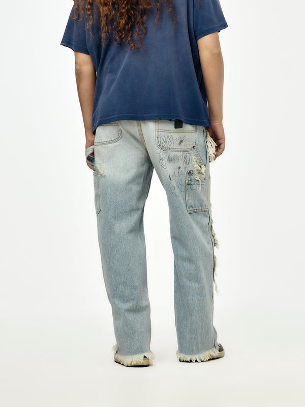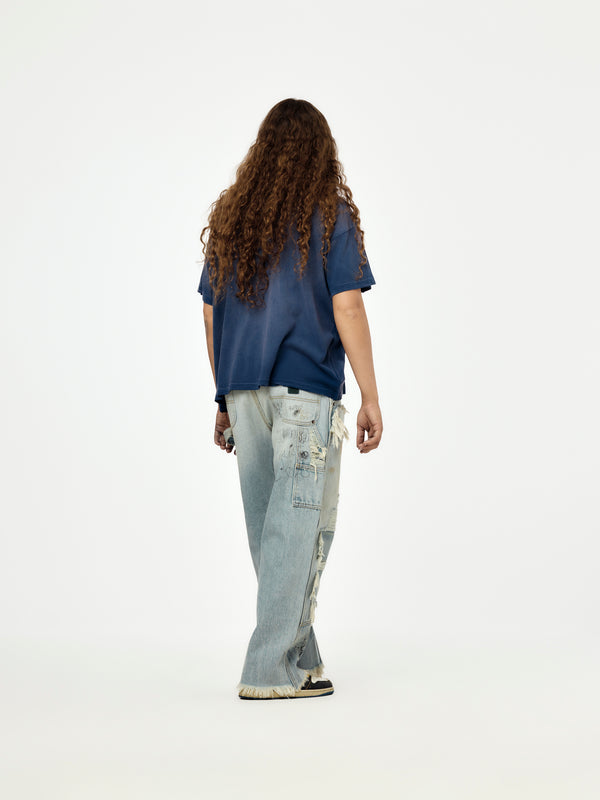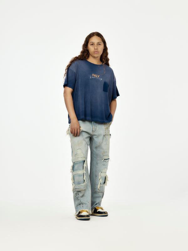 Paly reworks classic workwear through the Busted DBL Knee Jean. Constructed from durable denim, the silhouette features reinforced double knee panels and a relaxed fit. Distressed detailing adds character, blending utility-driven design with a worn-in aesthetic rooted in heritage workwear.