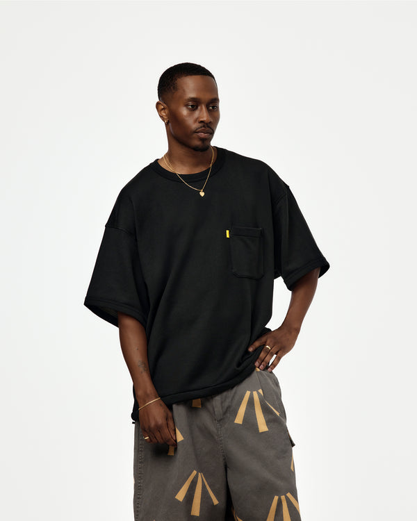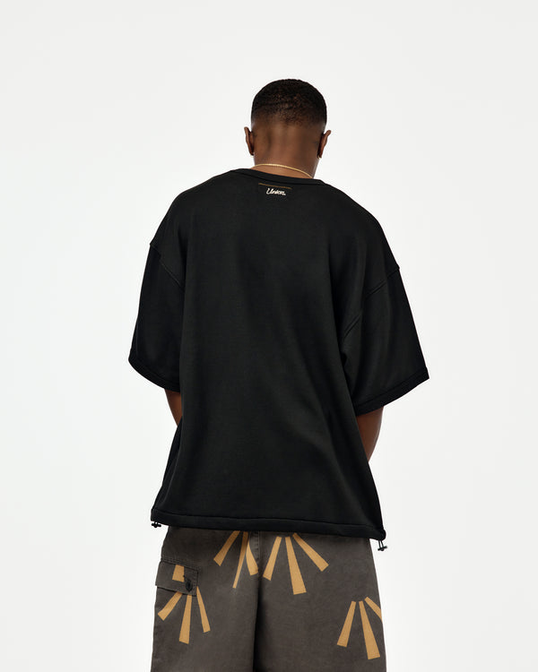 The Echo Tee blends athletic inspiration with modern function. A loose fit with elastic hem pulls allows adjustable volume, while loopback jersey adds structure—built for movement and layered styling.