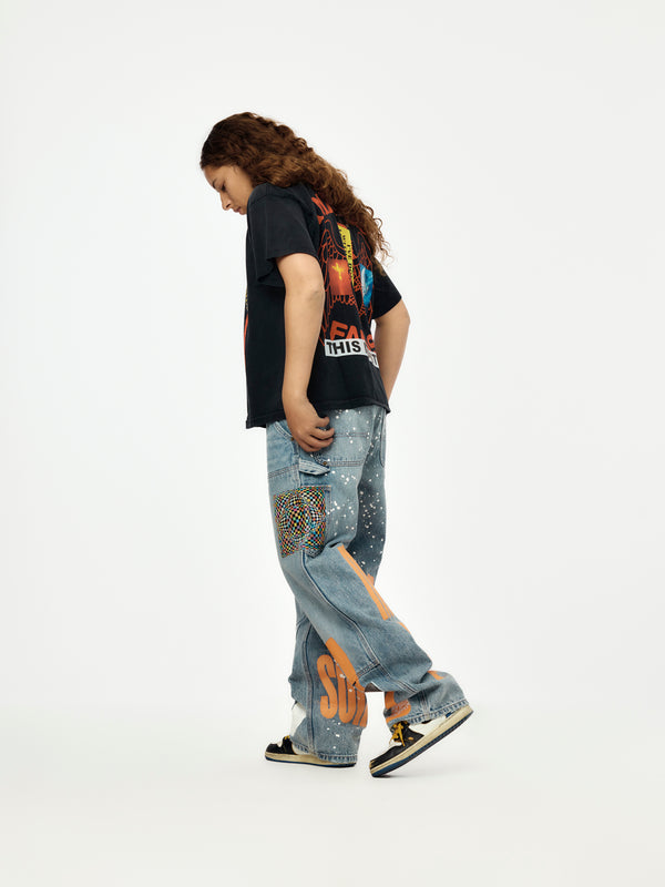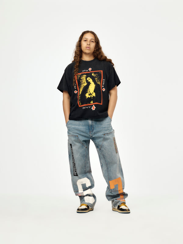 STUDIES reinterprets workwear through the Nothing Personal Double Knee Jeans. Constructed with durable denim, the silhouette references traditional utility pants while incorporating a relaxed fit and graphic identity. Finished in blue, the design balances function, wearability, and conceptual detail.