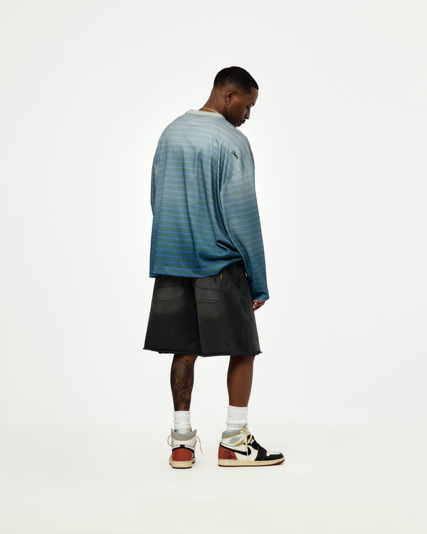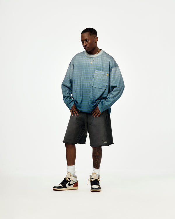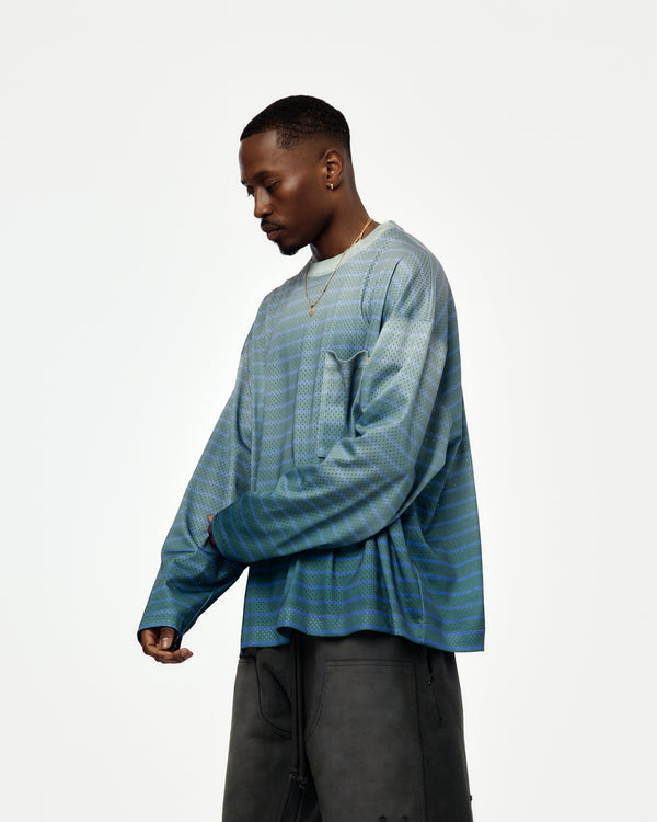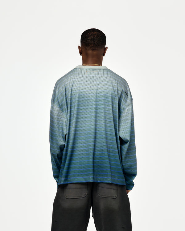 The Somerset LS Knit features striped mesh construction with sun-faded effect. Generous proportions and breathable texture reflect LA’s climate and analog-era styling.